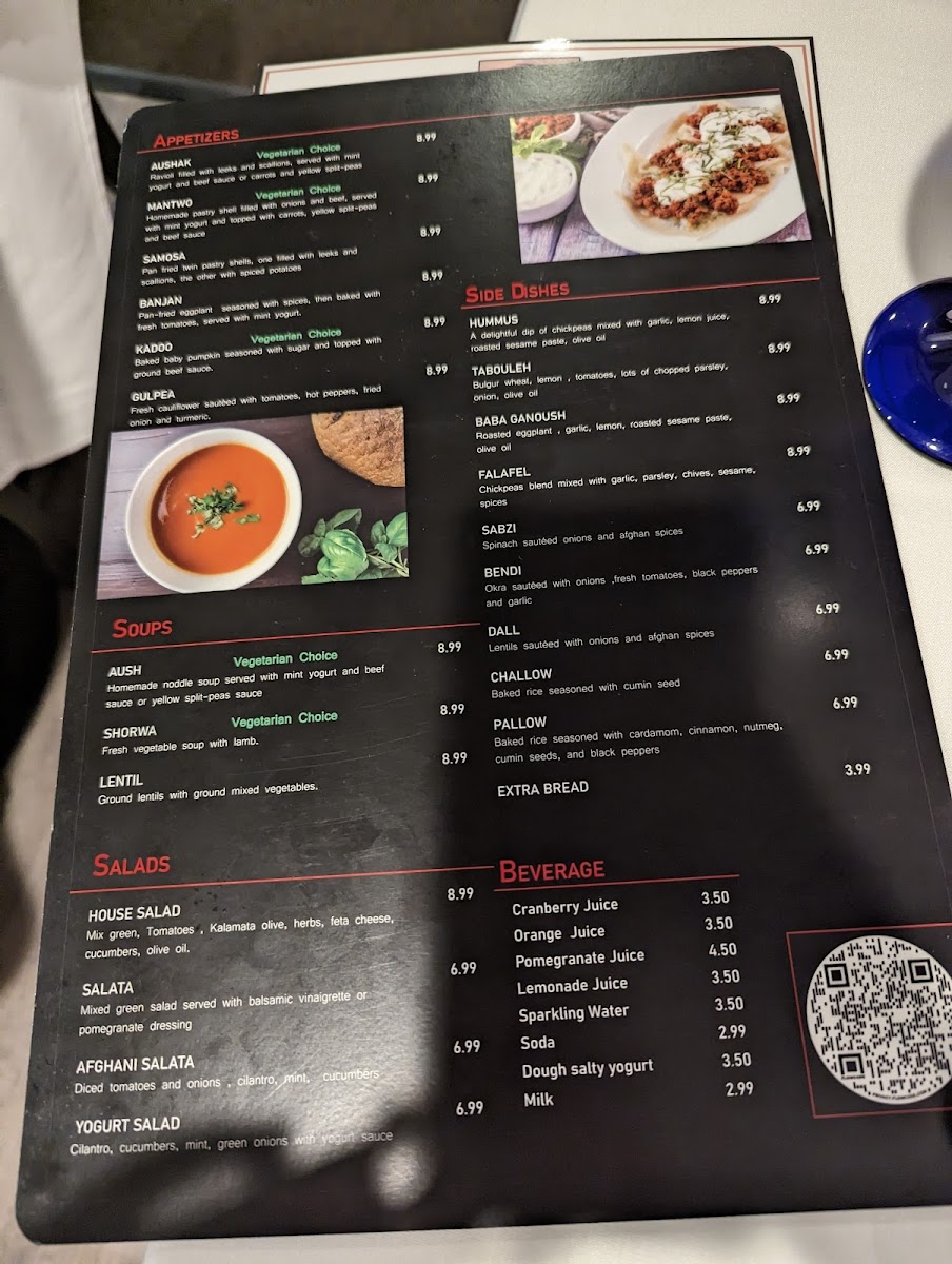 Sautéed spinach with chunks of lamb and afghan seasonings. Served with challow rice.